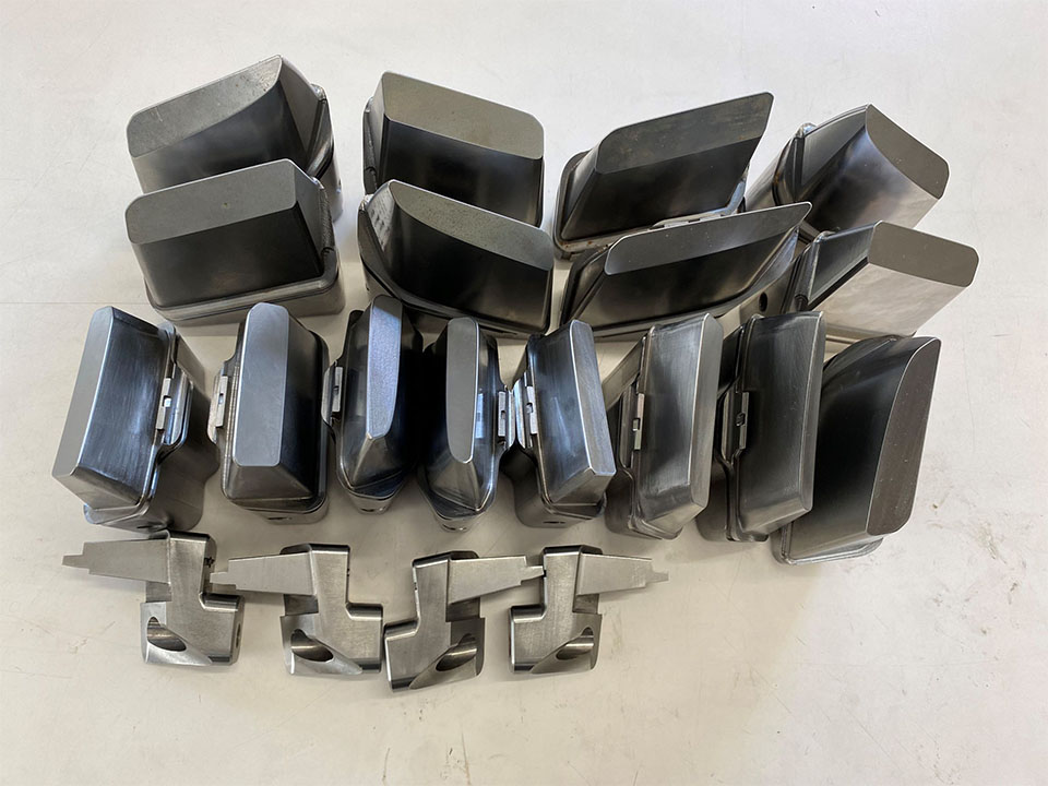 射出成形金型の部品です。傾斜コア、直上コア等単品製作も承ります。